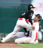 2015.04.08 19: 37이명기,'두번째 도루는 들켰네'