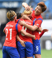 2015.04.08 16: 27조소현,'골 넣고 지소연과 격렬한 포옹'