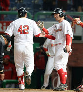 2015.04.09 20: 49정상호,'김사율 울리는 스리런포'