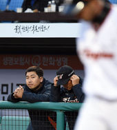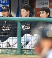 2015.04.09 19: 03덕아웃에서 경기 지켜보는 한화 허도환