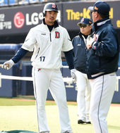 2015.04.09 16: 11오재원,'코치님 어떻게 하면 더 잘 칠 수 있죠?'