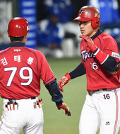 2015.04.10 20: 11정훈,'배영수를 상대로 역전 스리런포!'