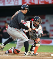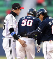 2015.04.10 19: 184차원 정성훈,'김현수 볼넷출루에 나쁜손'