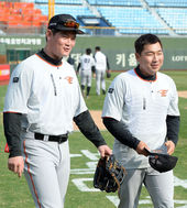 2015.04.10 16: 57이성열-허도환,'한화 유니폼이 어색하지 않죠?'
