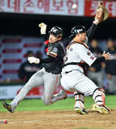 2015.04.10 22: 24이용규,'볼 빠지며 홈 세이프! 동점이다!'