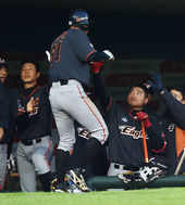 2015.04.11 19: 04김현수 솔로포,'기쁨 나누는 선수들'