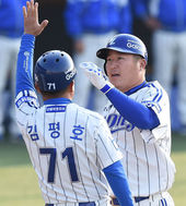 2015.04.11 17: 33이승엽,'멋진 홈런이야 형우'