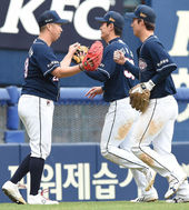 2015.04.12 16: 08유희관,'멋진 수비 고마워'