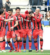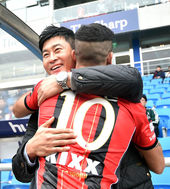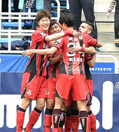 팀 동료에 둘러싸여 기쁨 나누는 박주영