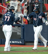 2015.04.14 20: 52두산,'박건우 투런포 축하해'