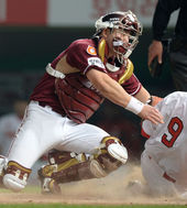 2015.04.15 19: 50문우람 레이저 송구에 아웃되는 박재상