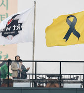2015.04.15 19: 03수원kt위즈파크에 내걸린 세월호 1주기 추모 리본
