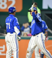 2015.04.15 19: 09류중일 감독,'솔로포 박한이, 어서와'