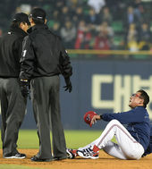 2015.04.15 21: 19김기태 감독 퇴장,'그라운드 위 누워가며 심판에게 어필'