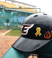 2015.04.16 14: 57세월호 1주기, 선수들 헬맷에 '노란리본'