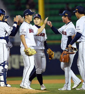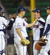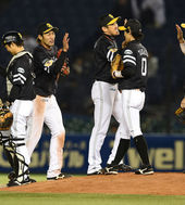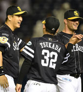환호하는 소프트뱅크,'이대호 역전타로 승리했어'