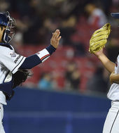 2015.04.17 21: 41최재훈-진야곱,'9회를 지켰어'