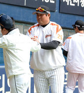 2015.04.18 14: 59최준석, '김태형 감독 반가움에 손 꽉'