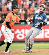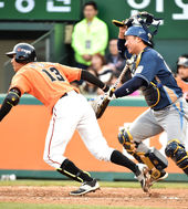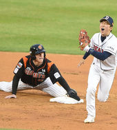 2015.04.18 18: 35문규현, '헤드퍼스트슬라이딩, 내가 빨랐지'