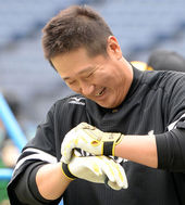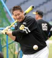 2015.04.19 12: 43이대호,'펑고치며 소프트뱅크 분위기 UP'