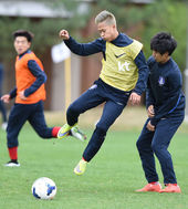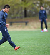 2015.04.20 11: 21미소짓는 이승우,'훈련은 즐겁게'