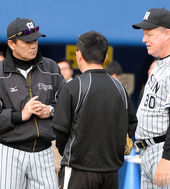 2015.04.21 17: 09코치진과 이야기 나누는 한신 와다 감독