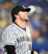 2015.04.22 20: 28역전 허용에 자책하는 한신 선발 랜디 메신저