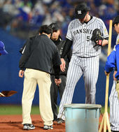2015.04.22 20: 05타구 맞은 부위 확인하는 유창식