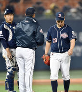 2015.04.22 21: 06교체되는 유희관,'너무 두들겨 맞았어'
