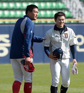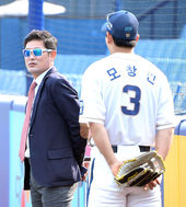 2015.04.24 16: 26'모창민 군기잡는(?) 이종범 해설위원'