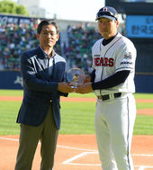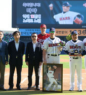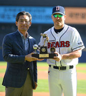 2015.04.25 21: 00양해영 KBO 사무총장과 기념촬영하는 김현수