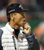 2015.04.25 21: 11미소짓는 김성근 감독,'우리 애들이 잘하네'