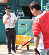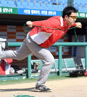 2015.04.25 15: 39토스 배팅볼 던져주는 안치용 해설위원