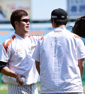 2015.04.25 15: 24캡틴 최준석,'강민호! 훈련 열심히 해라'