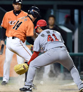 2015.04.25 20: 15강경학,'폭투로 득점'