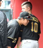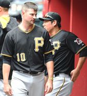 2015.04.27 05: 44강정호-머서,'더그아웃서 훈훈한 인사'
