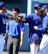 2015.04.28 08: 54류현진,'동료들과 즐거운 대화'