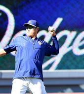 2015.04.28 09: 00캐치볼 하는 류현진,'다저스의 선발진의 마지막 퍼즐'
