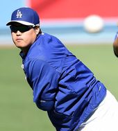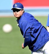 2015.04.28 08: 42캐치볼로 몸 푸는 류현진,'좀 더 세게 던져볼까'