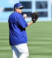 2015.04.28 08: 41캐치볼 하는 류현진,'어깨 부상 털어내야죠'