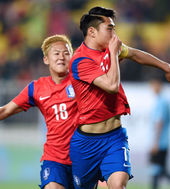 2015.04.29 21: 17선취골 이동준,'기쁨의 태극마크 키스 세리머니'
