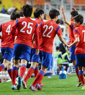 2015.04.29 21: 26이동준 선취골 기뻐하는 U-18 청소년대표팀