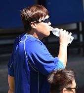 2015.04.29 07: 23류현진,'불펜 투구 후 달콤한 물 한모금'