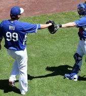 2015.04.29 07: 14두 번째 불펜 피칭 마친 류현진,'매팅리와 하이파이브'