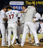 끝내기 홈런 정진호,'물 맛 좋다!'