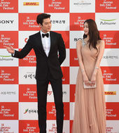 2015.04.30 18: 54JIFF 찾은 김우빈과 정주연,'팬들에게 시선 고정'