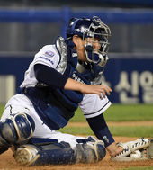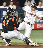 2015.04.30 21: 35윤석민-강민호,'발이 먼저? 태그 먼저?'