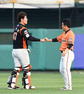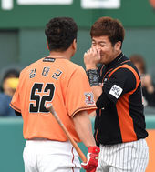 2015.05.01 18: 08강민호-김태균,'빈볼 사태는 잊었어요'