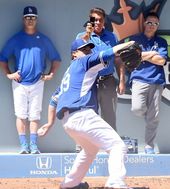 2015.05.02 07: 53류현진,'다저스타디움 관중석을 오르락 내리락'