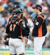 2015.05.03 15: 19손혁 코치와 이야기 나누는 한현희